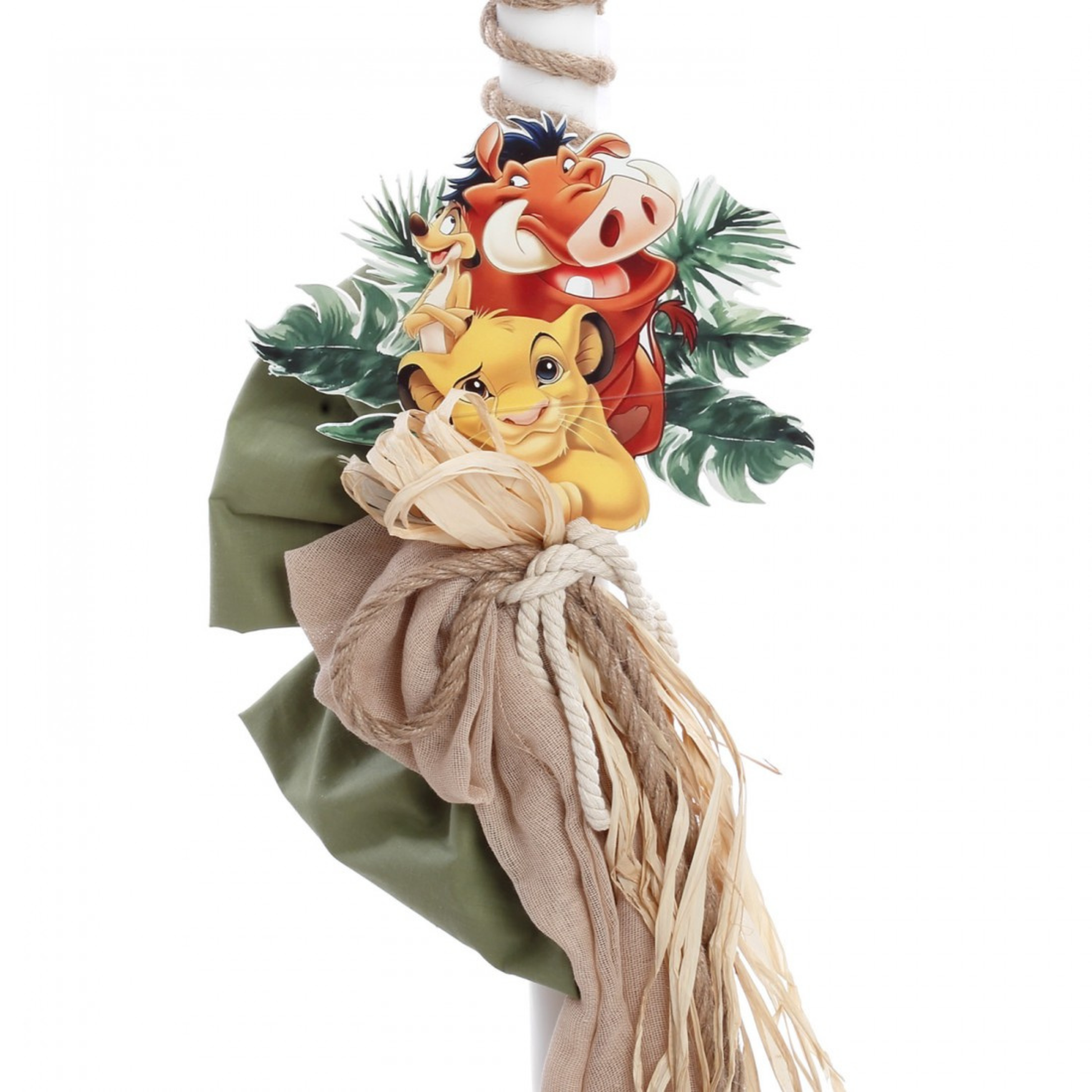 ✔ Λαμπάδα βάπτισης, στολισμένη με διακοσμητικό UV εκτύπωσης των χαρακτήρων Lion King, φυσικά υλικά.