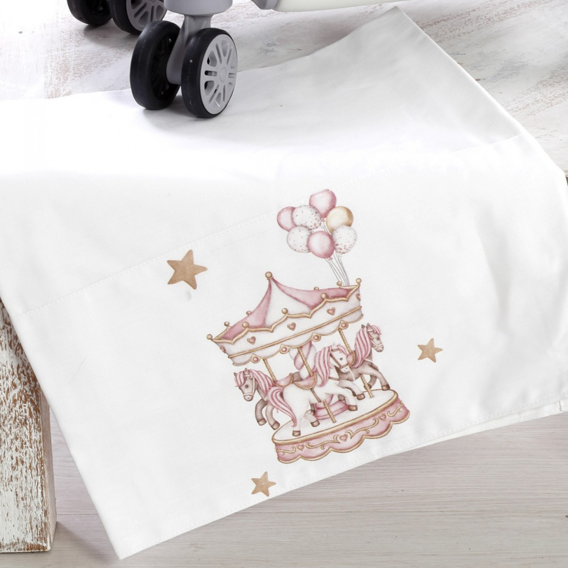 • Μεγάλη πετσέτα με χειροποίητο κέντημα καρουζέλ και διακριτικά αστέρια