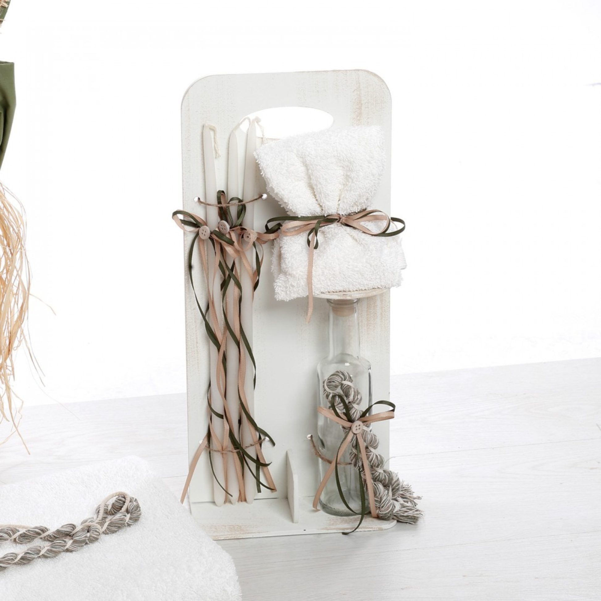 ✔ Σετ λαδιού με μπουκαλάκι, σαπούνι και κεράκια, διακοσμημένα με σχοινιά και ξύλινα στοιχεία.