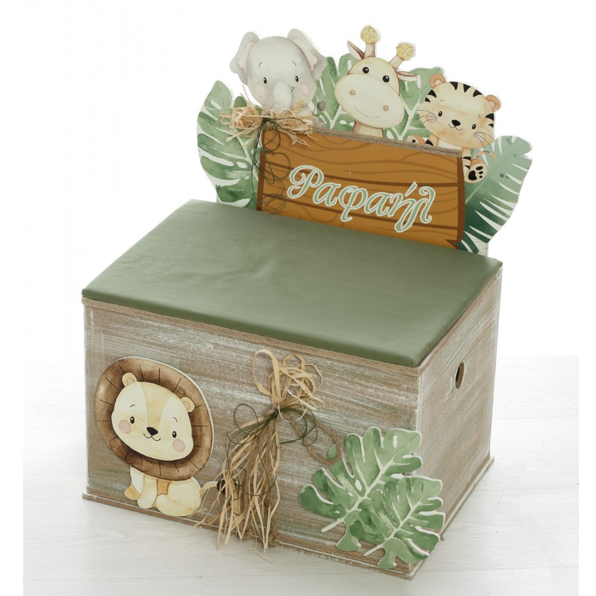 - Ξύλινο μπαούλο με θέμα ζωάκια