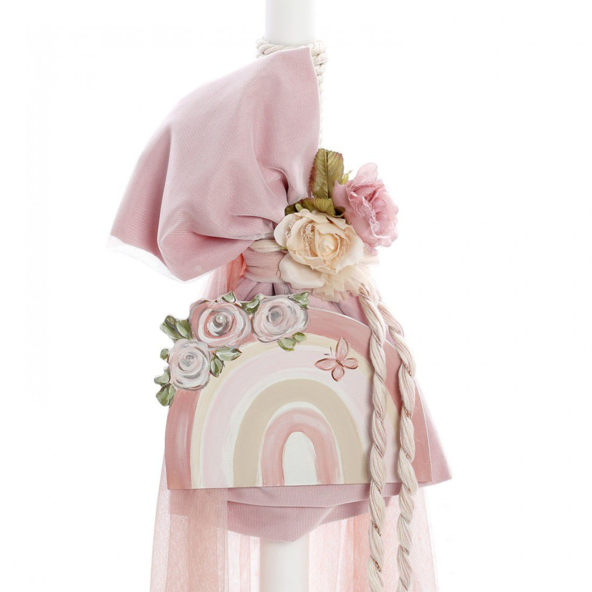✔ Λαμπάδα βάπτισης, στολισμένη με ξύλινο διακοσμητικό του ουράνιου τόξου