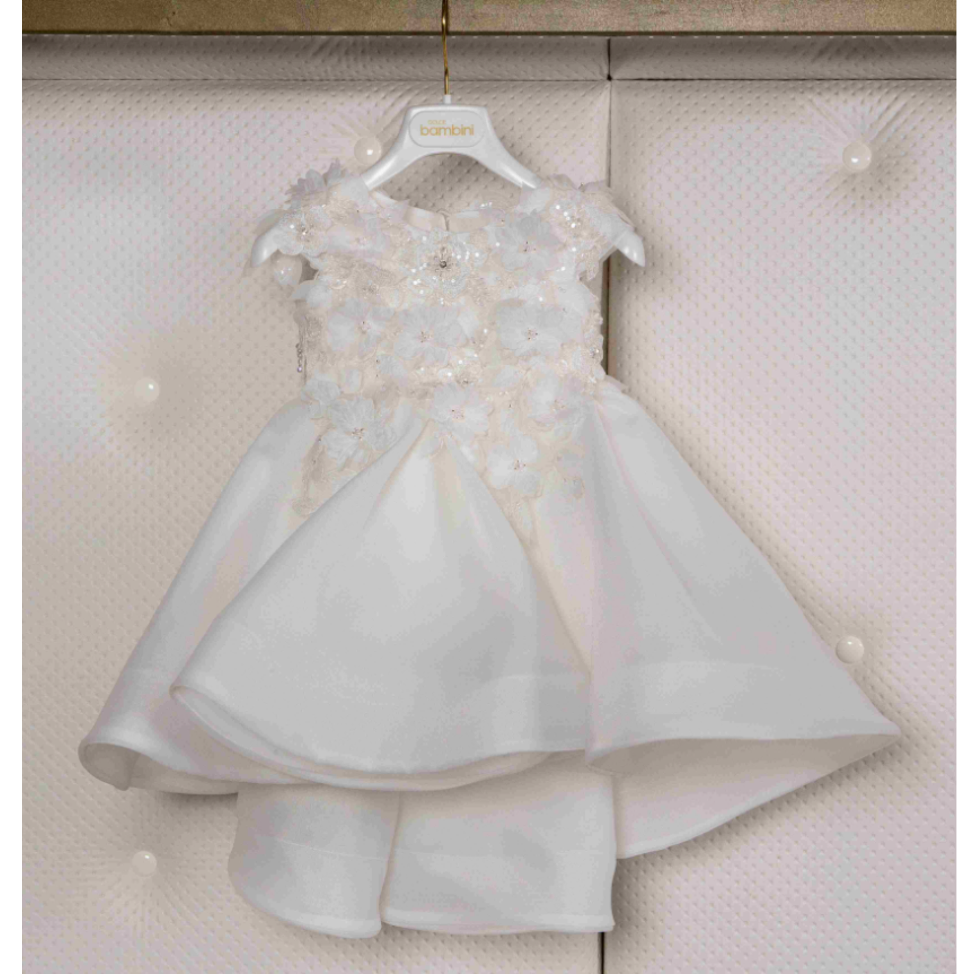 Χειροποίητες 3D λουλουδένιες λεπτομέρειες στο μπούστο που αποπνέουν ρομαντισμό.